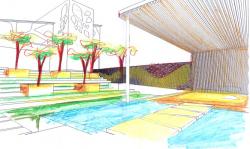 The residential villa consists of 1 master bedroom and 2 bedrooms with a 25m long swimming pool. The Swimming pool will be a datum for organizing the configuration of all building mass. The service building is to be located in the front side as the barrier and act as introductory image before entering the area. The project is situated in a high level area with a cool climate and surrounded by trees which when hit by sunlight will produce dramatic shadow effects. It is the shadow form like an artificial trees selects as the theme for entire design.
