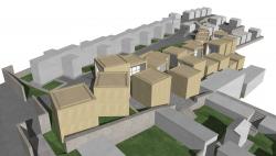 There will be 8 small squares on different levels, each with little green areas, stairs and ramps for disabled access. The principal elevations face the centre of the small squares. The closeness of these elements creates a cosy feeling thus the sacristy of the place is used to its full merit.