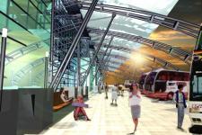 They worked under the assumption of re-structuring of the train tracks leading to a lower level, and the bus station at a higher level.