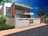 A house of 700 sq yards plot has been designed, a modern house for family members of 6. The house has drawing, dining, kitchen, two bedrooms at ground floor and 3 bedrooms at first floor with gym and terrace garden at second floor. The main entrance has been kept from side entry into lobby what counts to the first floor though a double height and staircase leading to it from lobby.