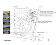 Using the contours of site the extreme corner of plot was considered for the building location. The two levels worked out was the upper being the lobby, dining / kitchen, drawing , master bedroom and office, the lower being the guest rooms.