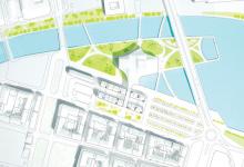 by pulling in the sea to the building and making a landfill to the east of the bridge we create a green cultural peninsula, an endpoint worthy of the placement of the most important cultural institution of the city. The higway becomes a bridge passing through the cultural peninsula instead of being the endpoint of the city.
