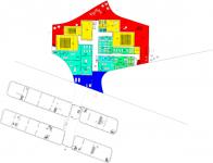 This creates a situation with no apparent backside which you would need in order to configure a theater in a traditional way. As opposed to the traditional theater program which has a front and a backside we propose to place the closed service in the heart of the building easing acces to all extrovert functions of the house and minimizing backsides. The foyer is wraped around the rest of the program and connected to the existing culturehouse.