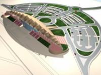The Grand Stand for a horse race track is located in Saudi Arabia close to Tebrack, 150 Km from Ryadh. This building is part of Nofa Equestrian Resort.