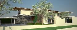 House SMTK 2: When tropical retreads blend together in modern concept of this house, its more powerful to celebrate natural ambience on it. The 2nd stories residence was designed for young Ginecolog`s doctor who decided have a simple layout in tropical modern. A long pattern layout of the house created with a transparant wall around a landscape instrument to combined a natural outdoor, tropical ambience, moods, and modern concept.