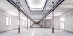 the industrial building that was in fairly poor condition has been refurbished in the spirit of the original and its defining characteristics. the main façade by was rehabilitated, recuperating the original colours of plaster, and a central double height space, where the owners had the sales hall, opened up. this space has been refurbished with sensitivity, maintaining the spirit of the original and recuperating a roof lantern that had covered the central space. on the other façades, in worse disrepair due to multiple interventions throughout the years, the work consisted of the recuperation of the order of the original openings, giving a unified patina that allows the injuries of the past to be seen in a subtle way.