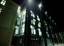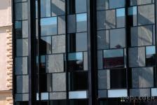 The façades of the courtyard where treated more freely: typologically they are divided in the curtain wall façade of the new building and the classical façade of the existing building.