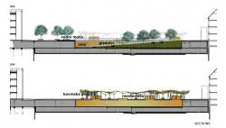 The ground floor level has been designed as a public square – »forum«, with a rectangular opening in the floor (1:4 (18 m : 72 m)). This green atrium symbolizes with its slope a connecting element with the old town center of Ljubljana (all rivers flow into the Ljubljanica).