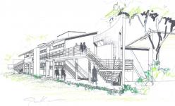 Design seeks to explore the idea of creating the learning space to cater for both formal and informal learning. The classrooms are organized in clusters around a wide walkway that offers opportunities for student interaction. this horizontality is counterd by a sculptural staircase that connects the tow levels and the curved wall that it pierces.