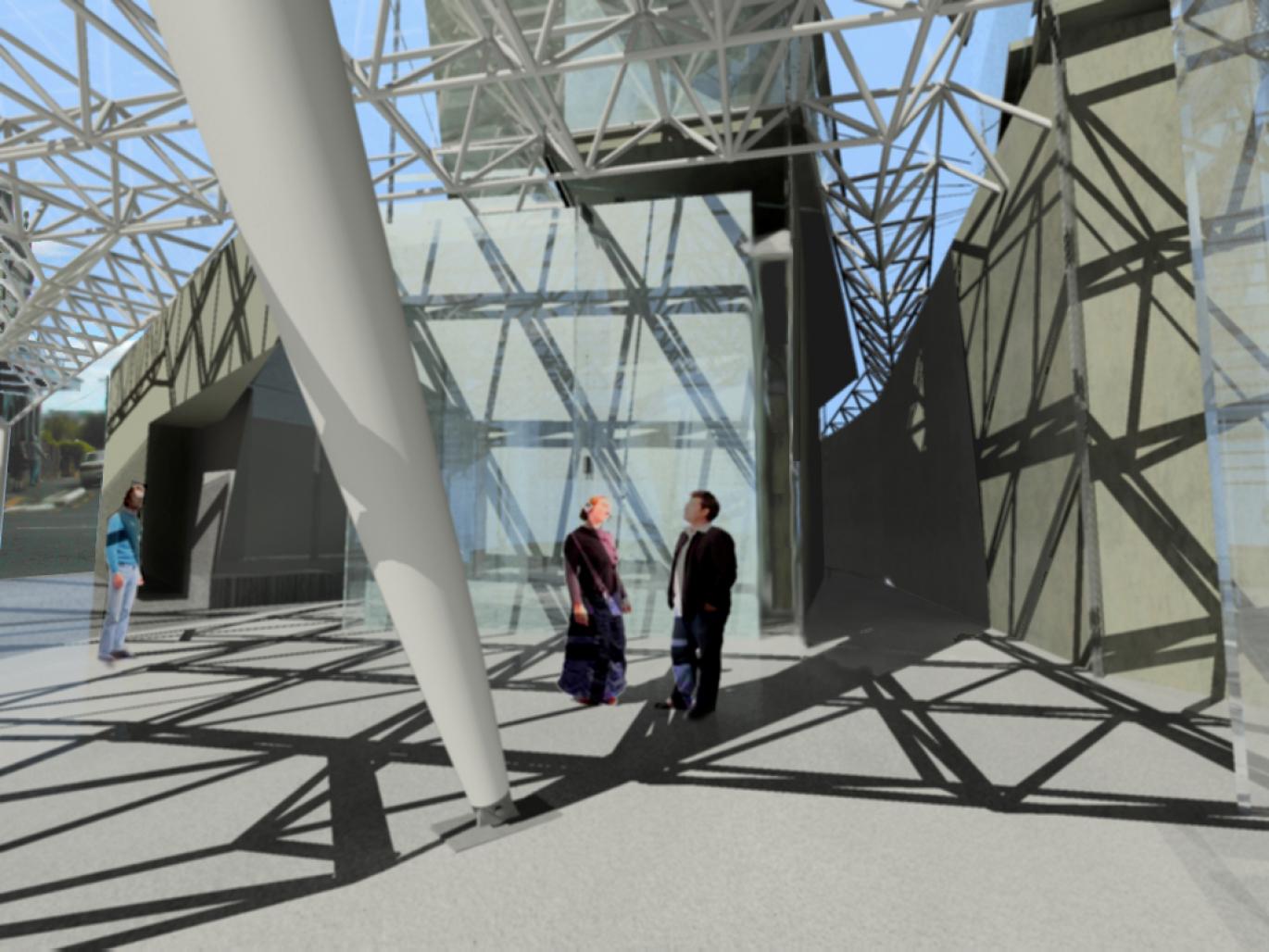Conceptualised as a network device - the manifestation of an internet community - with spaces that accomodate the temporal and transitional aspects of public liveliness.