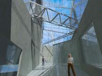 Transluscent pedestrianised bridges disperse people to and from the Hub`s centre - the public square - where an interface situation is created.