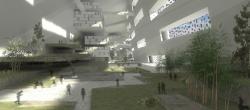 The plan expresses the desire to concentrate all inside the participations demands from the ban of an only great architectonic sign, maintaining the state natural of the two islands. Thought as a infrastructure-sculpture, the plan is shaped like a landmark in the landscape of the Bering Strait with a circular form that joins the two islands, like the gesture of embracing.
