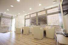 One of the main problematic characteristics of the pre-existing space had been its unorganized, disrupted and aged old façade. Our aim has been to recompose the shop’s indifferent image and unify its façade under a new characteristic external skin, thus making the edifice stand out of its environment. This skin has been made from wooden blinds supported by a steel exoskeleton. The blinds also offer protection against the burning Mediterranean sun and at the same time they ensure privacy and sound insulation for the meetings that take place indoors. Air ventilation units and other electrical installations are hidden behind this new skin.