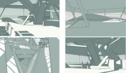 cube with 30 meters long sides: simple, primitive shape, two cutted corners, create two