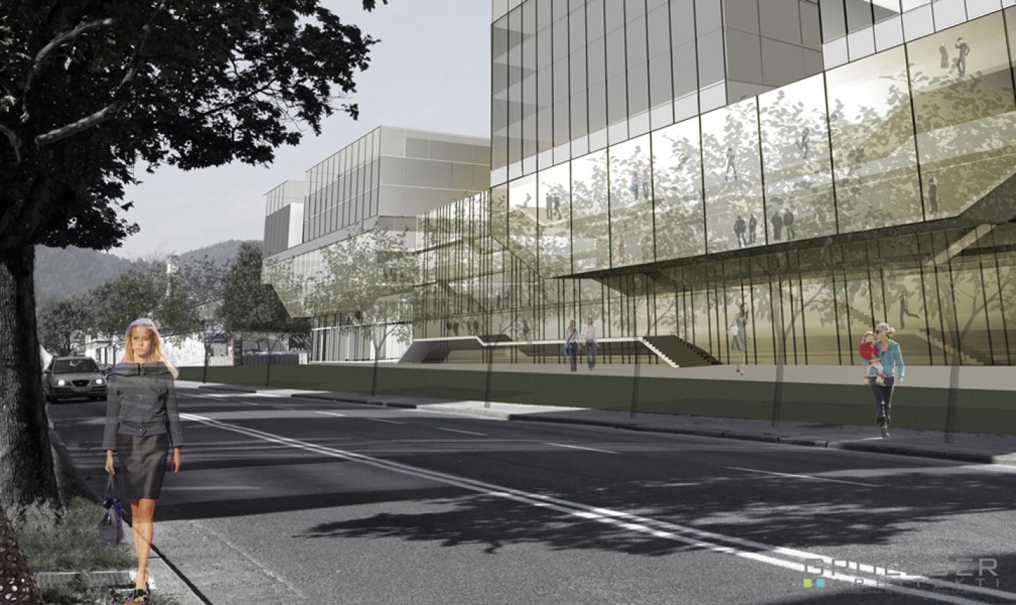 Status: design (equal second prize in the architectural competition for the new court building in Ljubljana).