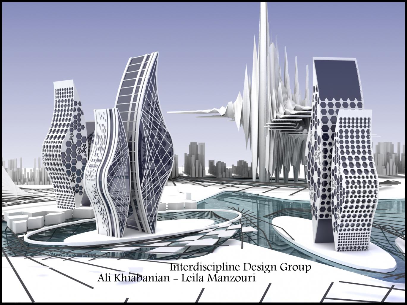 We have used the shapes of geometry in designing Skyscrapers and the organization and development of city. This shows a prediction of architecture in the future. Meanwhile, there are a comparison between the future cities with curve forms and the buildings like cube.