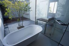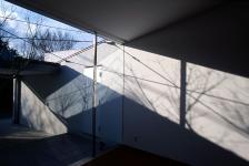 Furthermore, the roofs of both the private and public zones slope down towards the inner courtyard, designed so that the rooms can enjoy as much sky as possible. In particular, for the view of the trees in the park to the west of the dining room and living room, the garage roof is careful designed so it is as thin and unobtrusive as possible to provide the best scenery.