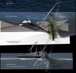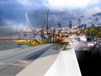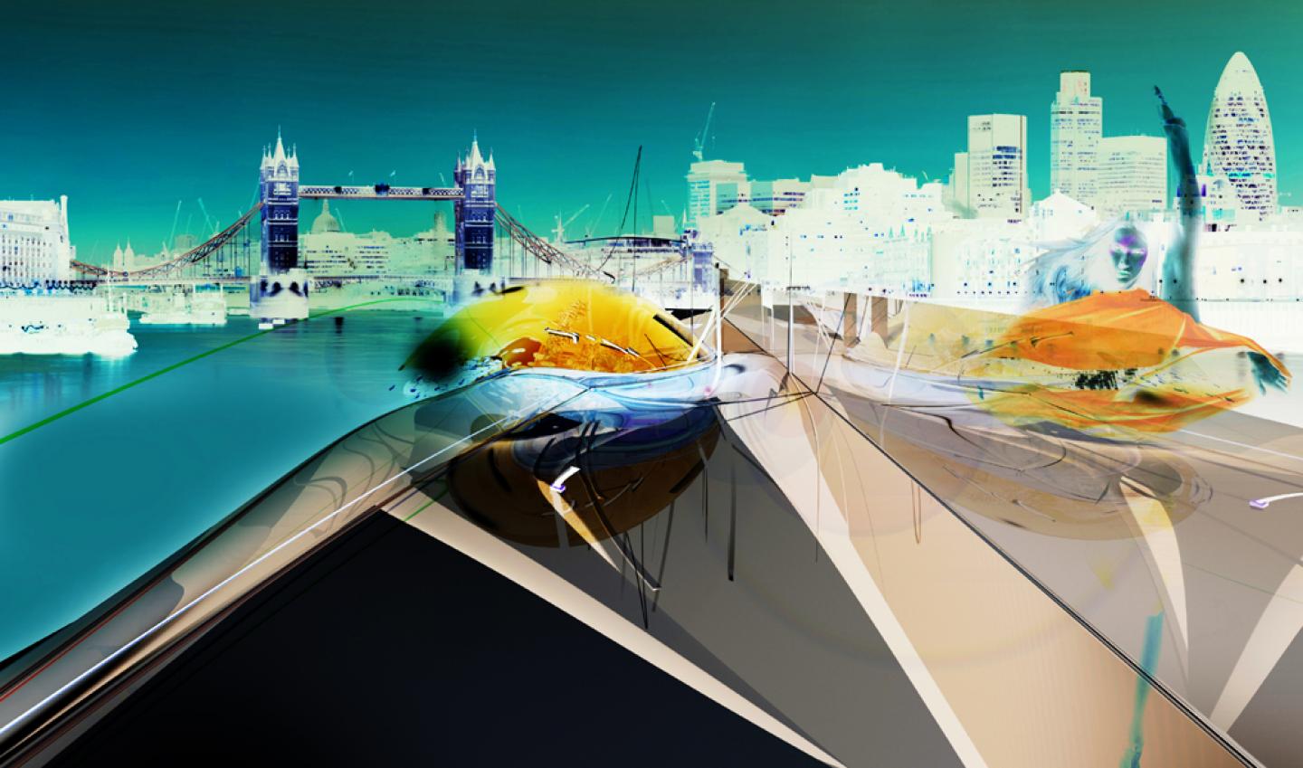 The gallery warps space using folded surfaces to create a continuous ever changing environment in which the art is viewed. London becomes a moving blank canvas altering perceptions of the gallery, blurring the edges between static and non-static, defining a series of projected spaces that simulate the existing physicality by using the boat as a lens through which to view London.