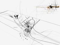 The exhibited pieces are the only focal points anchoring the scheme into a programmatic context instead of a static physical environment.