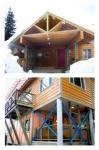 The Great Room overlooks Hemlock Valley and has the ski in, ski out potential. The ceiling is 18ft. high at the peak with exposed rafters giving a homey feeling. Off the Great Room is a glass covered deck, enabling barbequing even in the winter when the area can get up to 40ft. of snow.