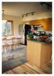 The kitchen and bathrooms have beautiful earth coloured heated tile floors and the living area has a variegated birch hardwood floor.