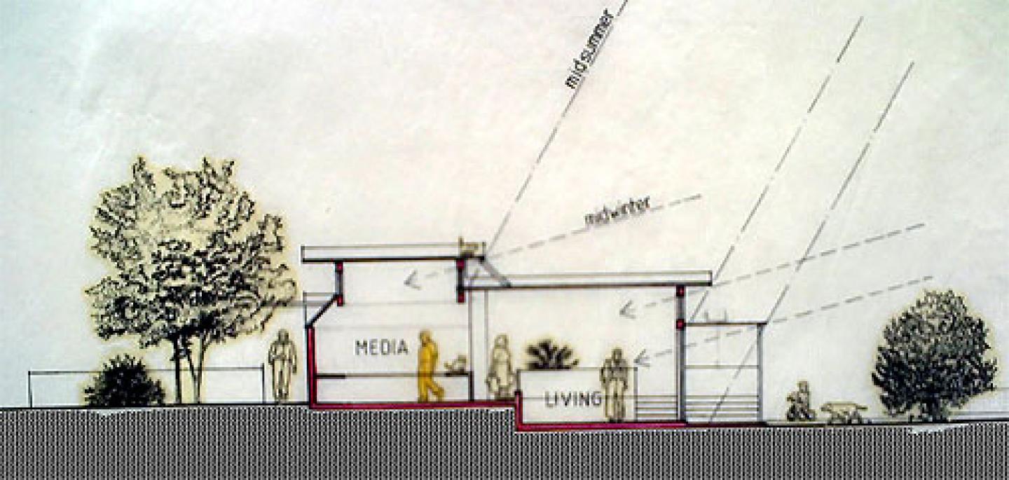 An energy efficient, climate aware, sustainable technologies building for a medical Doctor which made use of solar energy to store heat in heat sinks under the floor in summer and release it in winter.