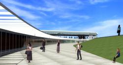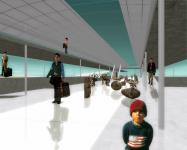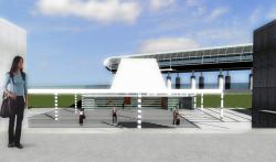 All this is set through an 8-m height above ground level along the entire roof of a bridge 120 m long and 24m wide elliptical section, which is divided into two levels, taking into the first a double-height central hall and flanked by two terraces and on the 2nd level are two double platforms divided by height. Are located in the arrivals of the escalators leading to the migration monitoring stations located below the ground.
