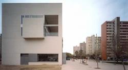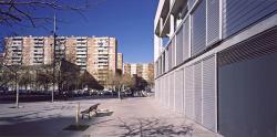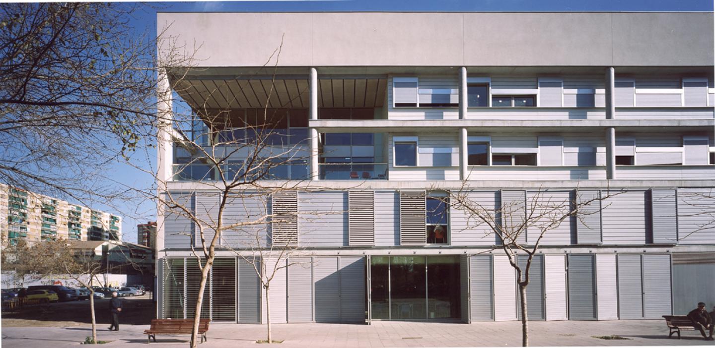 Given the project’s urban implantation, it seemed appropriate to situate the public part of the day centre’s programme in the west façade, overlooking the landscaped area that extends as far as Rambla Marina and bordering the pedestrian promenade. For this reason, of the two lengthwise bays into which each of the floors is divided, it is the west bay that accommodates the multipurpose hall (ground floor) and the programme of reading room, classroom-workshop, hairdresser’s, chiropodist, gym, computer room and offices (first floor).