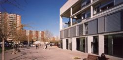 The entrance to the sheltered dwellings is in the south of the east façade and, as needed, via the doorway of the day centre. The stairway and lift in the entrance nucleus are the only elements in the housing programme to be located on the ground floor.