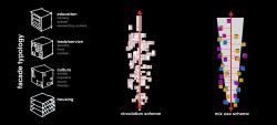 The building, more than 500 m (1640 ft) tall, will provide housing for thousands of people and also access to educational, cultural and leisure infrastructure to inhabitants and nearby communities. The plurality and mix found in the “favela” is applied to the programmatic needs of the skyscraper: Culture – theaters, cinemas, music halls, auditoriums, museums, places for samba rehearsals, libraries, places for expositions; Sports – gyms, pool, sport rooms, lockers, services; Green roofs; Health Unities; Schools, elementary schools and nursing houses; Small offices areas; Servi