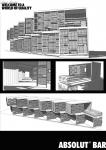 design proposal for absolut vodka bar @ bandung, west java | building made of used container boxes while the facade composed by arrangement of absolut vodka used bottles |