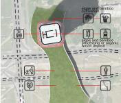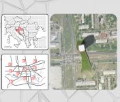 Distribution area is realized beneath the platform in which pipe systems of produced bio-fuels and oxygen are spread. This platform serves also as a green, public space and bridge, spanned over both sides of the road.