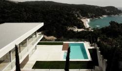 The house is conceived as a succession of horizontal levels on a view point platform where the swimming pool has been installed. The interior space has been defined by big sliding glass windows so that the living space is only enclosed by the limits of the surrounding views. The seasons and the changing lights are what encloses this house.