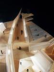 The erosion-like sculpturing of the volume gave the opportunity of defining three different spaces of the museum in terms of programmatic specificity and space qualities. Starting from ground level the entrance of the museum faces a cave-like covered plaza where the angled shafts frame the view to the sea. This large embracing gesture of the building gives the effect of a melting together of the museum and the seafront platform and is serving as an entrance simultaneously for the museum, the restaurant and the cafeteria as well as a place for walking, leisure and music events.