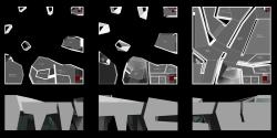 The starting point of the design is a cube with the maximum allowed dimensions which in turn is ‘eroded’ and reduced to half of its volume in order to accommodate the necessary program of the museum. The ‘erosion’ of the volume results in a vertical artificial landscape that reflects the ubiquitous rocky coasts in Greece that erode from the salty wind of the sea.