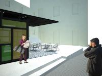 Public square in a traditional environment, with a kiosk facility with internet and tourist information.