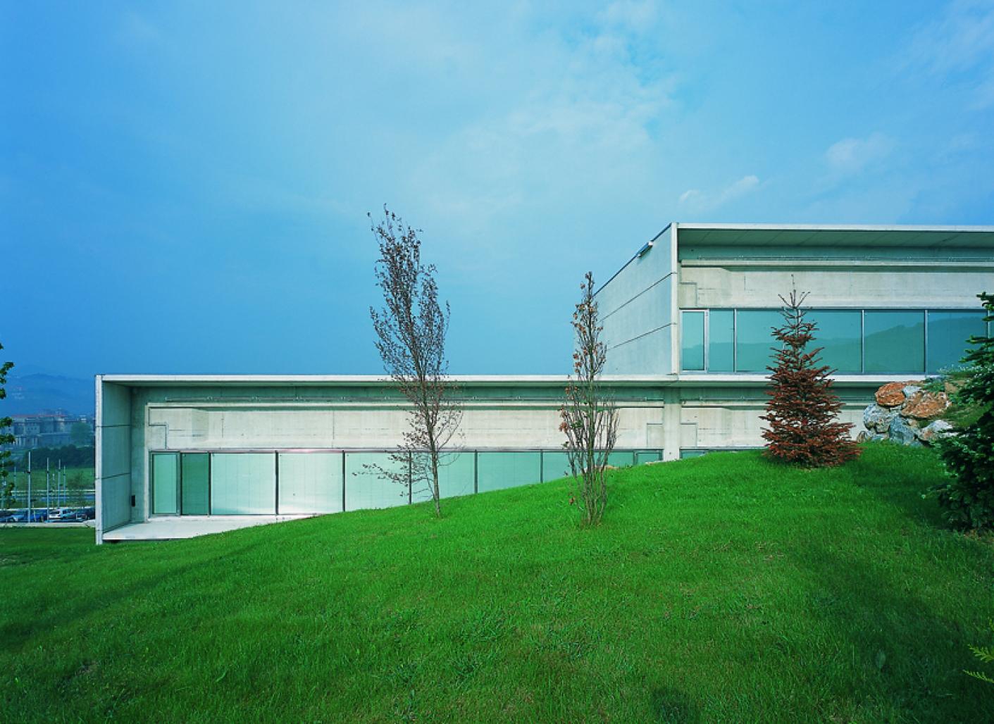 The volume of the building follows a staggered pattern of a functional, block layout which, like sliding bars, gives shape to the functional connections and allows the incorporation of their presence in this environment, thus managing to achieve a mimetic horizontal composition in keeping with the terrain’s characteristics. The point here has been to create spaces fully adapted to usage, where the industrial aspect forms a characteristic of the building, translated into terms of efficiency and adaptability, but where architectural environment spatial values are evident by their quality and not purely for the sake of appearance.