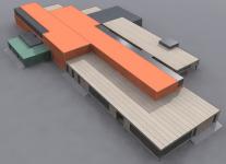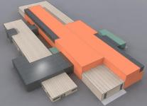 The main parts of this project are: the production hall (composed of 2 parts-"a pair of shoes") and the administrative part. The main idea for this project was to emphasize the"symbol of Shoes factory". This 2 shapes symbolize a pair of shoes, foot-step in the grid of world-a grid of life( the grid is represented through material with striae, guidelines).