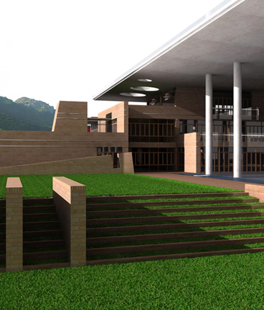 The hot and dry climate of Islamabad in summer with low humidity and rather cold winter requires special consideration. Simultaneously considering the use of bricks in both the Indus civilization of Pakistan and the Bengal civilization is another consideration for the scheme. So, the C.C block wall with cavity and cladding brick as infill with R.CC structural column support is suggested to achieve the relatively comfortable interior. Here the use of locally available facing brick with increased thickness justifies the archeological ambience linked to the past.