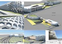 the traffic flow for the bus station is inspired from the blood flow in biological capillary action.the entry and exit to the station is at either sides like arteriole and venule in the capillary action of the organs.the fraffic(bus,taxi,three wheelers,etc.)is taken as a substitute for the blood in capillary action the form of the main terminus building is inspired from the structure of the bee-hive. so as a whole the structure seems like pumping the bee-hive with capillary action.