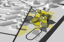 City skin was analyzed with structural algorythm of area cells. Existed buildings and yards were choosen as local centers of 2D city frame. These results were projected into building area.