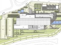 An internal atrium acts as the social center and brings light to the very core of the building.