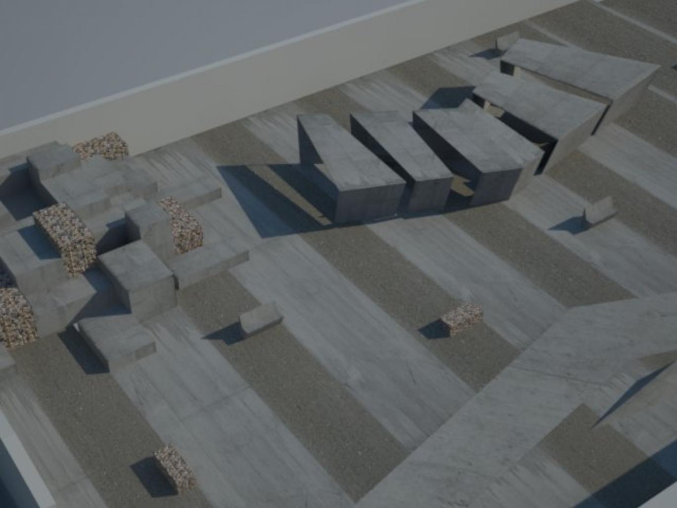 The project expects the accomplishment of a new space chambers that all will live inside of the old structure of aluminum and cement of the covering pre-existing, a panoramic area realized across the cubical superimposition of elements composed from crude cement and prisoner`s docks containing rocks, a canopy in crude cement in which cuts allows the right use of sun in the varied seasons of the year, elements in relief in the changes of direction Ground. An area that for long time is remained still and static and that now emits the actual force make emerge the actual natural elements from the ground.