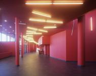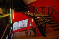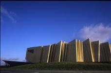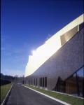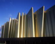 The Scarab is a multifunction space with economic, public and cultural events purpose. Within its conception the Scarab hides different construction modes.Concrete which constitutes the main enveloppe for its acoustic qualities.Steel for its capacities of great bearing : the grill, the structure of the outer enveloppe. Inside the iron stairs take an animal dimension and increase the slightness and transparency of the collective spaces. The shell made of golden aluminium gives the Scarab its magic beyond its thermal functionality.
