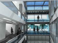 • Energy generation with PV panels facing south on the roof and PV glass of the atrium skylight that also serve for filtering the sunlight