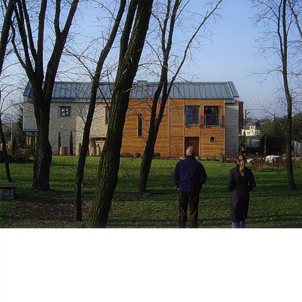 The house was build in a village, situated within the borders of the Jura Landscape Park. It is turned toward the main road by its gable, just like most coutry cottages. The house is subordinated to the spatial layout of the village and reflects the shape of the neighbouring barns and its proportions. Exterior walls are covered with local limestone and wood.
