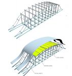 It is a small, moveable pavilion for art exhibition. It is place in Park Kultury in Warsaw, parallel to main axis of the park. People move along the main axis, you can view the exhibition and also continoue the trip through the park. It is made from steal boxes ( modules - easy and fast put the things together ) covered with steal sheets.