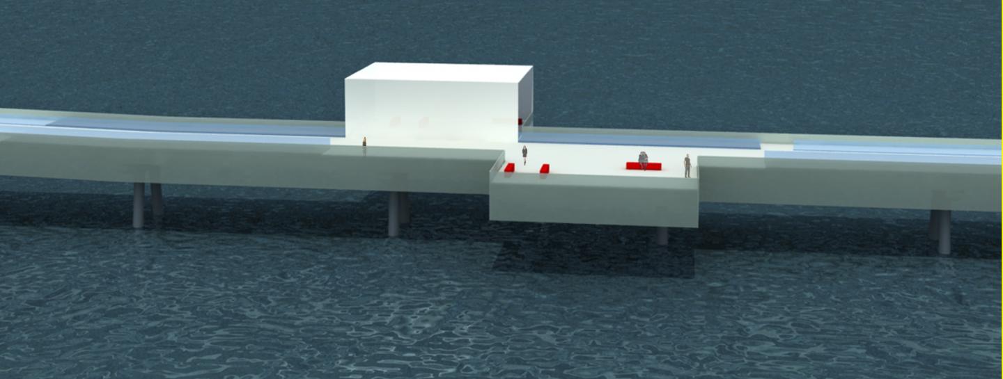 In this context it has developed the idea of a cultural center for the community universally accessible, with new pedestrian paths with a treadmill that is next to the road already. In order to make more accessible the rest and refreshment on the long stretch of dock you enter new spaces and panoramic view, organized and shaped like a rectangular hollow tubular fragments.