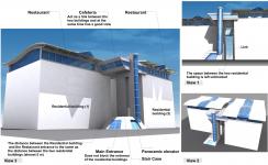 To link two residential buildings by adding an extra floor. the function of this extra floor is a restaurant.