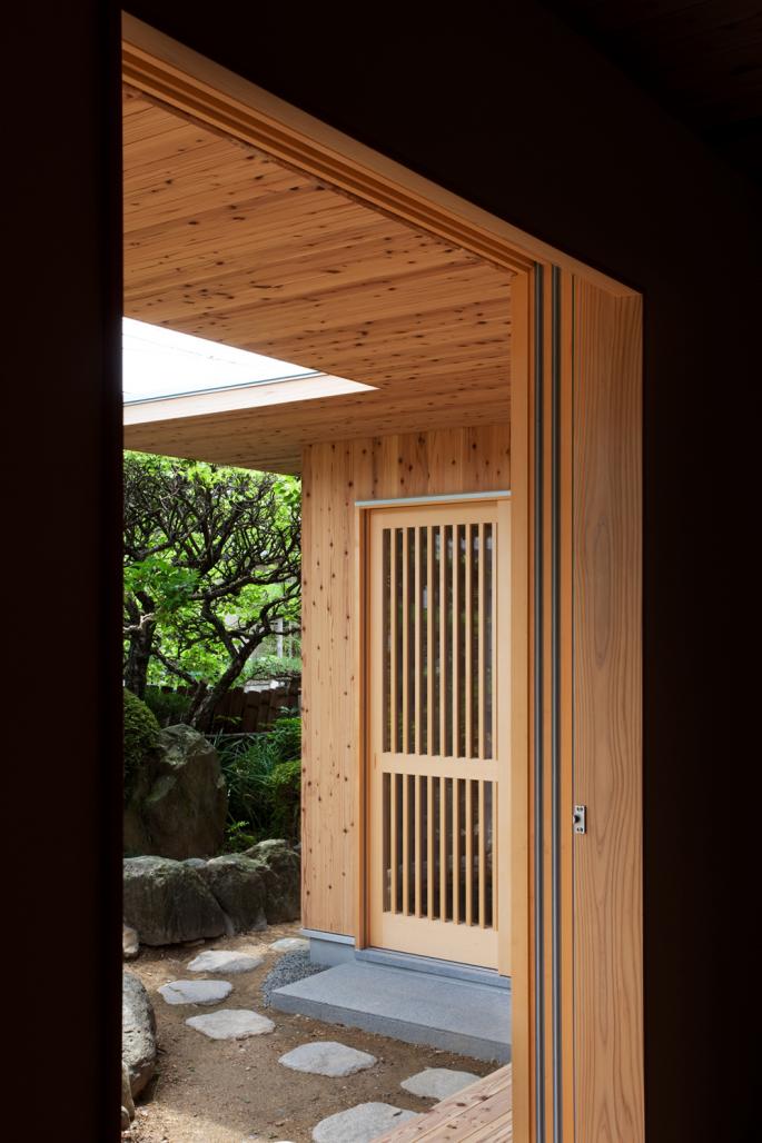 The ground floor is demolished except its structure such as columns, beams and foundations. The walls, eaves, floors, ceilings are all renovated. A larger room was planned with a new Japanese “tatami” room added into the existing garden.